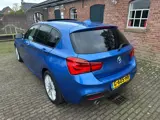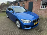 BMW 116i 5-Drs. met M-pakket, Estoril blauw metallic met zwart stoffen bekleding, sportstoelen en stoelverwarming, airco met climacontrol, grootbeeld navigatiesysteem, digitaal dashboard, i-Drive met harde schijf, cruise-control, bleu-tooth af fabriek, lederen m-style...