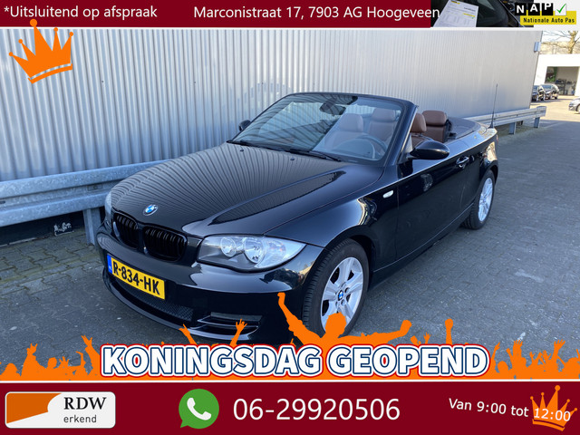 WIJ ZIJN ALLEEN OPEN OP TELEFONISCHE AFSPRAAK. Nette en goed rijdende BMW 1-serie Cabrio 118i, slechts 170Dkm. op de klok en met o.a. Klimaatregeling, Vol Lederen interieur, Stoelverwarming, Navigatiesysteem, Apple CarPlay / Android Auto, Cruise Control, Windscherm, Origineel Licht Metaal en nieuwe APK. Inruil is uiteraard bespreekbaar.