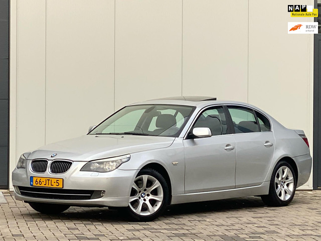 Deze BMW 5-serie komt uit 2008, werd geleverd van 24-03-2007 tot 31-05-2010. Deze geïmporteerde personenauto staat sinds 2009 op kenteken, is voorzien van een diesel-motor, heeft een maximum vermogen van 145 kW (197 PK) en een cilinderinhoud van 2993 cc.