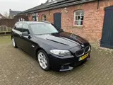 BMW 520i Touring automaat 184 Pk. Executive met M-Pakket, Carbonzwart metallic met zwart vollederen bekleding, half electrisch verstelbaar en sportstoelen, Grootbeeld navigatiesysteem, airco met climacontrol, cruise control, I-drive, schakelflippers aan het stuur, radio/Cd/Mp3 speler met Aux. en usb, multifunctioneel lederen sportstuur, zwarte hemelbekleding, electrisch bediende ramen voor en achter, key-less entry, originele 18 inch M-style lichtmetalen velgen, electrisch bediende achterklep, parkeersensoren voor en achter, electrisch uitklapbare trekhaak, mistlampen in de voorbumper dakrails, dealeronderhouden ( wij hebben een nieuwe motor met 62.000 Km....