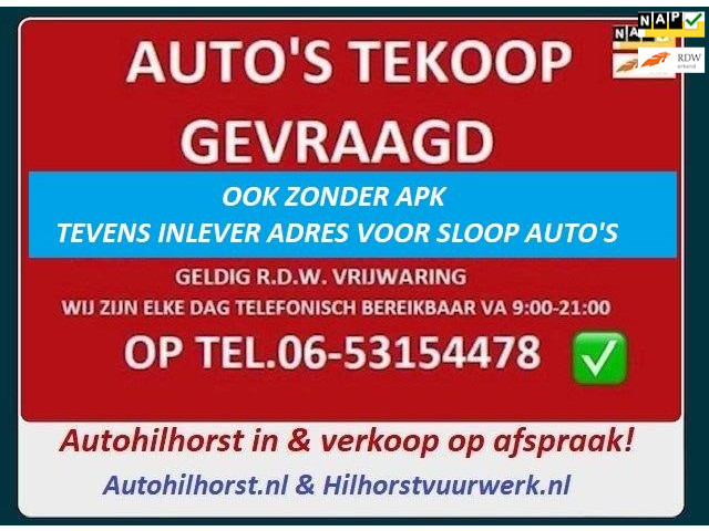 Tevens inkoop van auto's, ook zonder apk + inlever adres voor sloop auto's! r.d.w. erkend bedrijf.