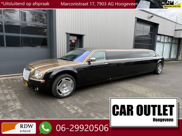 WIJ ZIJN ALLEEN OPEN OP TELEFONISCHE AFSPRAAK. Unieke One of a Kind Bijzonder nette en rijk uitgeruste Chrysler 300C 3.5 V6 Stretch Limousine 120 Krystal Coach Custom, slechts 66D.mijl op de klok en met o.a. Gescheiden individueel instelbare Klimaatregeling, DAB+ Radio, High-End Audiosysteem, Multimediasysteem, Sterrenhemel, Minibar, Smart TV, Stoelverwarming, Navigatiesysteem, Bluetooth (Carkit), Cruise Control, Park Distance...