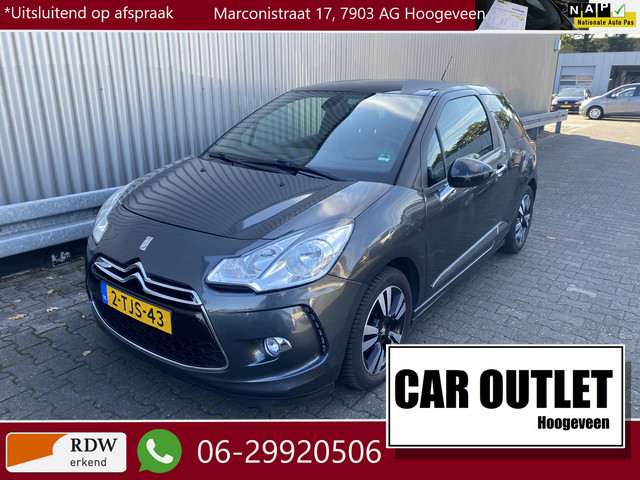 WIJ ZIJN ALLEEN OPEN OP TELEFONISCHE AFSPRAAK. Nette en goed rijdende Citroën DS3 1.2 VTi So Chic met o.a. Automatische Klimaatregeling, Vol Lederen interieur, Navigatiesysteem, Bluetooth Carkit, Cruise Control, LED Dagrijverlichting, Origineel Licht Metaal en nieuwe APK. Inruil is uiteraard bespreekbaar.