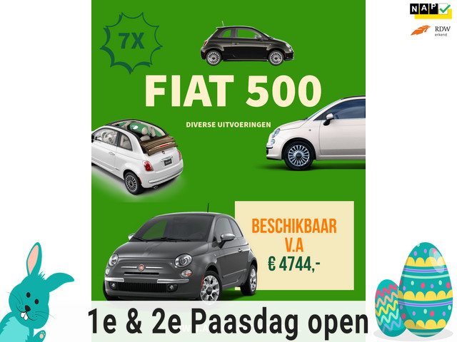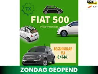 Ben je op zoek naar een leuke, compacte stadsauto? Wij hebben maar liefst 7 Fiat 500’s op voorraad in diverse kleuren, uitvoeringen en prijsklassen!