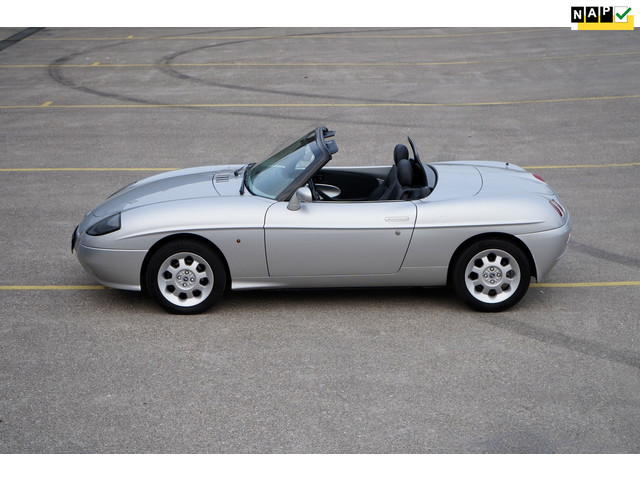 Deze Barchetta stond vroeger bij ons nieuw in de showroom bij het dealerbedrijf in Schagen. Daar heeft ze best wel even gestaan. Het is een Edizione 2001 maar we verkochten haar pas ( met 0 km ) in 2003. Ik verkocht haar aan goede klanten van mij. De familie Schippers. In 2011 is ze overgegaan naar de tweede eigenaar. Jaren daarna zag ik haar staan in Schagen geparkeerd voor een heel mooi huis. Ik herkende het kenteken en dacht nog: zal ik een briefje onder de ruitenwisser doen zodat de mensen waarvan ze nu is mij kunnen bellen als ze haar ooit weg doen? Maar niet gedaan, wel onthouden. Nu, nog weer jaren later kregen wij een klant uit Schagen in de Winkel die bij ons een 4C kocht. Ik raakte met hem aan de praat en hij vertelde waar hij woonde. Ik zei: daar heeft ook weleens een zilvere Barchetta gestaan! Ja, die hebben we al heel lang was het antwoord. Misschien wil ik die binnenkort ook wel inruilen. En zo geschiedde: 25 jaar later is de cirkel weer rond en heb ik haar weer in de winkel. Nu met 84.197 kilometer. Nog steeds prachtig! Kraakhelder lakwerk, eerste lak, een perfect interieur, een volledig sluitende onderhoudshistorie en een hele mooie donkerblauwe kap. Een Barchetta voor de man of vrouw die echt op zoek is naar iets moois!