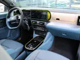 Interieur: Blauwe en ivoorkleurige stof met gele stiksels, Stof