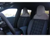 Interieur: Blauwe en ivoorkleurige stof met gele stiksels, Stof