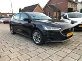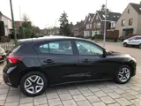 Glanzende Zwart Metalic Ford Focus HB met 100 Pk motor met Airco , Centrale vergerendeling , Elektrische ramen en 5 Deurs met achteraan Kindersloten .