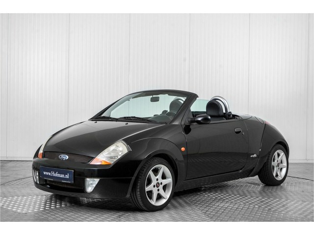 Ontzettend leuke en behoorlijk zeldzame Ford Streetka! Meesterontwerper Pininfarina was verantwoordelijk voor het ontwerp en heeft gezorgd voor een zeer strakke tweezitter cabriolet. Het is absoluut een mooie wagen om te zien de zwarte lak gecombineerd met zwarte bekleding. Dit exemplaar werd geleverd in de meest complete Futura uitvoering en is daarom onder anderen voorzien van lederen bekleding , stoelverwarming en airconditioning. De zeer pittige 1600 cc 4 cilinder motor is goed voor bijna 100 PK, meer dan voldoende voor het lage gewicht van de Streetka. Op de teller staan slechts 114000 km kilometers.