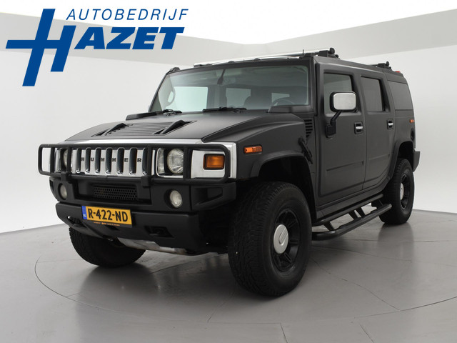 Geel kenteken Hummer H2 met 5 zitplaatsen, Fabriekskleur geel, maar mat zwart gewrapt, Zwarte velgen, Standkachel, Leder interieur met stoelverwarming voor + achter, Afneembare trekhaak, Sidebars, Airco, Mistlampen, Cruise control, Elektrisch schuif/kanteldak, Bose speakers, Dakdragers, Touch-screen radio met CD-wisselaar en DVD speler, Elektrische stoelverstelling met geheugen. Youngtimer met dagwaarde bijtelling bij zakelijke aanschaf. Deuk in het linkerachterportier.