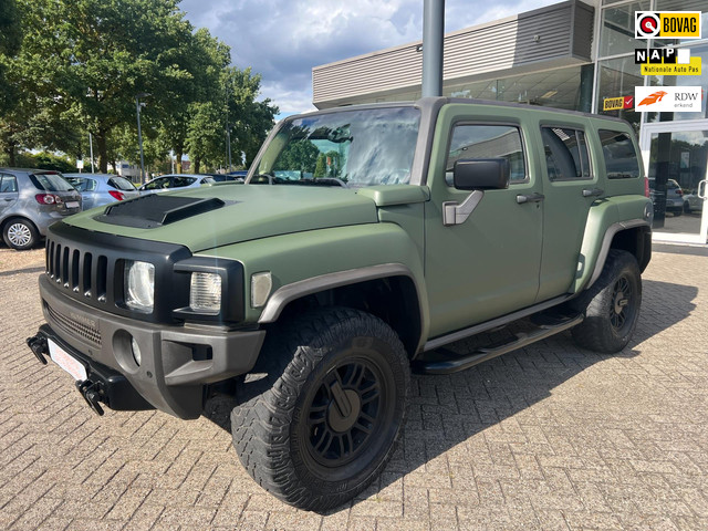 Deze Hummer is mat leger groen gewrapped, dit kan verwijdert worden indien gewenst. Laat u niets wijsmaken, deze Hummer H3 biedt alles wat u van een auto verlangt. Met een vijfcilinder motor en een automatische transmissie beschikt deze Hummer over uitstekende prestaties. Het stijlvolle lederen interieur geeft deze Hummer H3 net dat beetje extra. Er is een rijke uitrusting aanwezig in deze auto, waar onder meer ook stoelverwarming bij hoort.