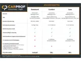 - Pakket Comfort (€ 595): 12 maanden BOVAG garantie (op occasions boven €4500,-), Onderhoudsbeurt volgens onderhoudsschema, tenaamstelling & vrijwaring, nieuwe APK keuring (indien geldigheid APK korter is dan 1 jaar), halve tank brandstof, professionele poetsbeurt, 12 maanden CarProf-Pechhulppas (EU dekking + woonplaatsservice).