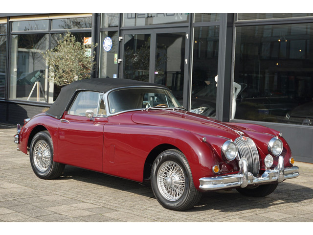 Jaguar XK 150 (1959) in de iconische kleur rood, volledig gerestaureerd en in mint conditie. Dit is een zeldzaam en waardevol exemplaar van een van de mooiste sportwagens uit de jaren '50, die zowel technisch als esthetisch tot in de puntjes verzorgd is. De XK 150 is een van de laatste modellen uit de legendarische XK-serie en staat bekend om zijn verfijnde prestaties, klassieke uitstraling en uitzonderlijke rijervaring.