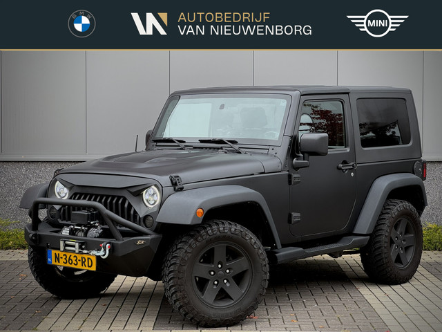 Hierbij aangeboden deze bijzondere en stoere Jeep Wrangler 4x4 met 3.8 v6 benzinemotor, gekoppeld aan een 4-traps automaat. Het betreft een Sport-uitvoering met Hardtop-dak en vele originele accessoires zoals originele Jeep XRC voorbumper met towbar en achterbumper van roestvrijstaal in matzwart gecoat, Vevor elektronische lier (tot 6,000lbs/2700kg trekgewicht), orginele Mopar FCA Jeep zijschermen, Full-Led koplampen en achterlichten met LED oranje knipperlicht, Vaste Trekhaak (verstelbaar) met stroomvoorziening (EU), Aftermarket motorkap met functionele luchtinlaten met motorkapvergrendeling, Originele Jeep 17" lichtmetalen velgen in matzwart gecoat met offroadbanden + reservewiel, extra getint glas achter en tot slot een aftermarket uitlaatsysteem voor een sportievere rijbeleving. Motorkap, zijschermen, deuren, achterschermen en achterdeur zijn voorzien van een kwalitatieve matzwarte wrap. Het hardtop-dak is origineel voorzien van een matzwarte ruwe coating. Originele kleur is (zilver)grijs. Het interieur is voorzien van volledig lederen stoelen met leder...
