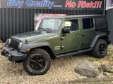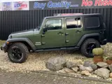 Prachtige bosgroene Jeep JK Wrangler met grijs kenteken en op LPG.
