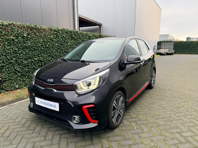 Prachtige, luxe KIA Picanto voorzien van de pittige 1.2 4-cilinder motor met 84pk én het GT-Line pakket, zwart exterieur met zwart/rood lederen interieur.