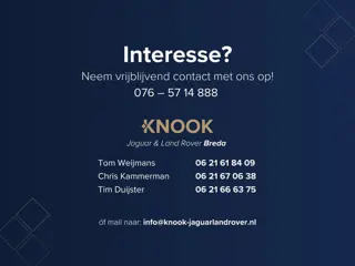 EU verantwoordelijke: Jaguar Land Rover Nederland Postbus 40 4153 ZG Beesd, NL 0345-688800 www.jaguar.nl [email protected]