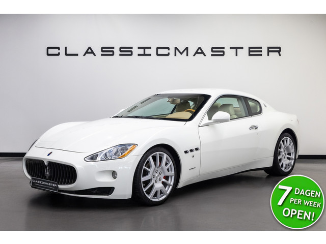 Maserati GranTurismo 4.2 uit 2008 te koop aangeboden. Deze Maserati GranTurismo 4.2 heeft een bijzonder unieke kilometerstand van slechts 46.768 kilometer op de teller! Het wit kleurig lakwerk verkeert in een schitterende staat. Het origineel beige lederen interieur verkeert eveneens in een perfecte staat. De Maserati GranTurismo 4.2 is geheel roestvrij en is voorzien van vrijwel alle mogelijke opties af fabriek. Deze Maserati GranTurismo 4.2 is zeer goed onderhouden en komt met haar originele service boekjes. De Maserati GranTurismo 4.2 is Bijtellingsvriendelijk (fiscale waarde € 22.000,-!) en de 21% BTW is verrekenbaar voor bedrijven!