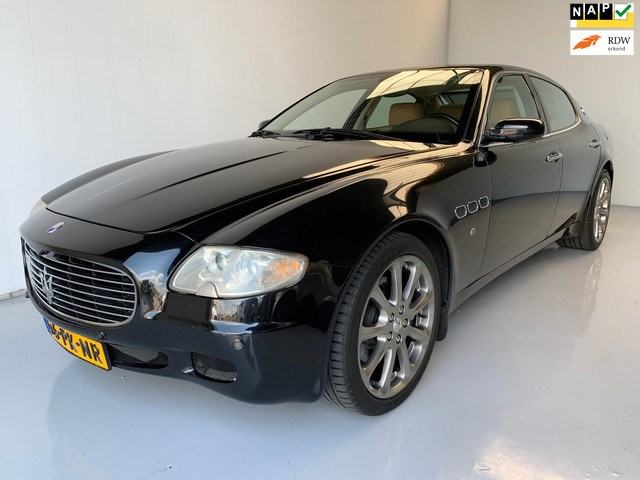 Hier staat een mooi Maserati Quattroporte 4.2 van bouwjaar 2004 met originele kilometers! De auto is voorzien van elektrisch leder interieur, grootbeeld navigatie systeem, DVD in de kopsteunen, climate en cruise control, stoelverwarming, F1 schakeling aan het stuur, elektrische ramen voor en achter, parkeersensoren, lichtmetalen velgen, multifunctioneel stuur, alarm, etc.
