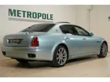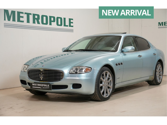 Deze hier gepresenteerde Quattroporte is een in Japan uitgeleverde versie in licht blauw metallic, een kleur die de auto zeer goed staat. Het interieur is in grijs leder uitgevoerd en bezit alle extra's die dit soort zeer exclusieve auto's bieden. Hij staat op mooie licht metalen 9-spaaks velgen. De auto is zeer goed onderhouden en is bijna niet van nieuw te onderscheiden. Deze Maseratie heeft slechts 45.581 km's gereden en voels aan als nieuw. Natuurlijk zitten alle boekjes erbij. Onder de motorkap zie je een bijna...