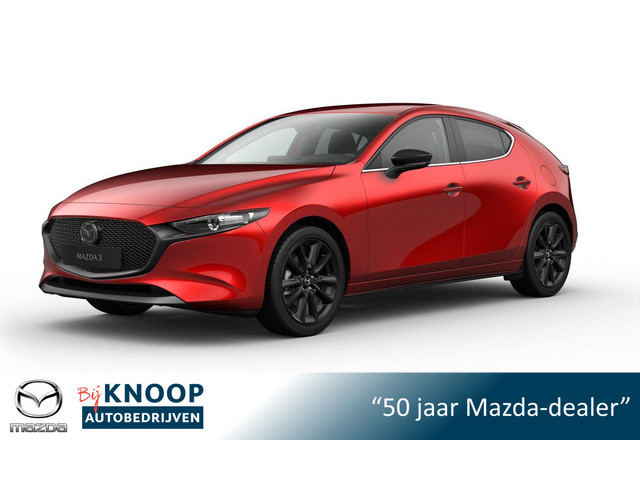 VOORRAAD Mazda3 e-Skyactiv 140 M-Hybrid handgeschakeld - Homura uitvoering in de kleur Soul Red Crystal metallic. Direct leverbaar met 6 jaar fabrieksgarantie en € 3.000,-...