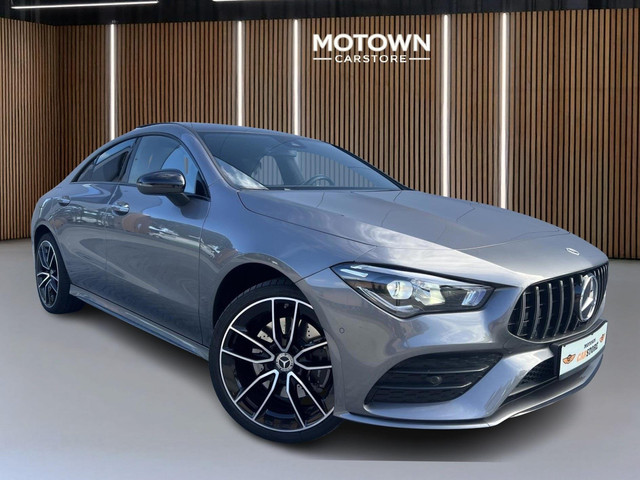 Deze prachtige Mercedes CLA-Klasse staat fabrieks af op 18 inch AMG sportvelgen, de getoonde 19 inch AMG sportvelgen zijn tegen meerprijs leverbaar.
