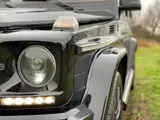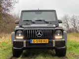Uiterlijk onderscheidt de G 55 AMG KOMPRESSOR zich van de gewone Geländes met brede 20 inch banden plus forse wielkastverbreders én aan weerszijde twee uitlaatpijpen. Imposant. Nog meer indruk maakt de 'G' wanneer de V8 tot leven wordt gewekt. Uit de uitlaatpijpen komt een ontzettend rauw geluid. Bruut Gemeen! Verbazingwekkend dat voor het uitlaatsysteem van dit geleide projectiel een typegoedkeuring is afgegeven. Wanneer je vol gas wegrijdt, wordt je met je rug in het leer gedrukt. Absolute sensatie! Horen en zien vergaat je. Een goeie vijf en een halve tel later passeert de naald van de snelheidsmeter het getal 100. Ongehoord voor een 2.410(!) kg zware mastodont met een Cw-waarde van een berghut. Je trommelvliezen registreren alleen nog maar het geloei uit de vier side pipes. Bij een snelheid van 210 km/h grijpt de begrenzer in. Niet geheel onverstandig, het onderstel is door AMG wel enigszins aangepast, maar het gaat nog steeds om een klassiek concept met starre assen dat in het terrein ook nog z'n mannetje moet staan.