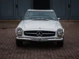 Deze Mercedes-Benz 250 SL “Pagode” (W113) is een van de zeldzaamste W113-varianten, hier zijn er namelijk ongeveer 5.196 exemplaren van gebouwd in de periode van 1966 tot 1968. Dit exemplaar komt uit 1968 en is een laat geproduceerd model uit de korte 250 SL-periode. Hij heeft een 2,5-liter zescilinder met mechanische inspuiting en heeft ongeveer 150PK. De 250 SL kreeg ook achter schijfremmen en is voorzien van een handgeschakelde 4-bak wat zorgt voor een leuke aantrekkelijke rijbeleving. Deze 250SL is uitgevoerd in de tijdloze kleur wit met een zilver biesje, het interieur is voorzien van zwart ledere bekleding.