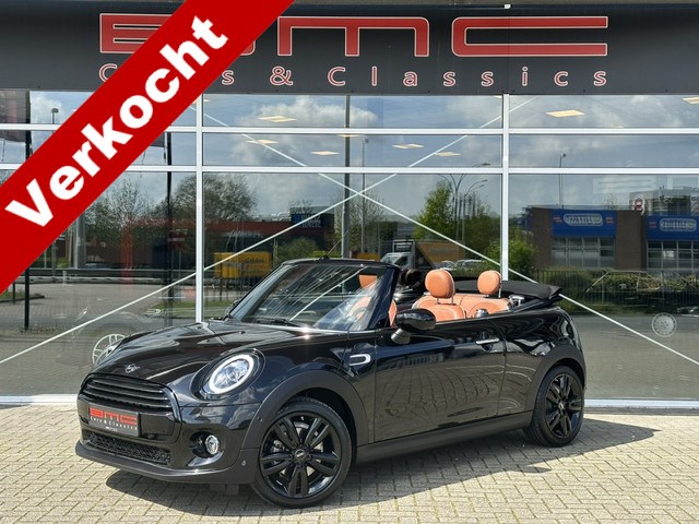 Zeer mooie Mini Cooper cabrio in de prachtige kleur Midnight black metallic.