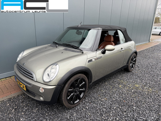 Zeer mooie, sportieve, leuke zuinige en complete Mini Cabriolet 1.6i 115pk Cooper Chili Sidewalk met o.a.: Mineralzilvere metallic lak, airco,volledig elektrisch cabrio dak, bruin lederen bekleding, lounge stoelen, stoelverwarming voor, windvanger, cruise control, 4-elektrische ramen, centrale deurvergrendeling op afstand, boordcomputer, getint glas, multifunctioneel lederen sportstuurwiel, Aux-aansluiting, radio bluetooth met USB-aansluiting, bluetooth parrot carkit, bekerhouders voor, mistlampen voor, PDC-achter, witte knipperlichten, neerklapbare achterbank en originele hoogglans zwarte...