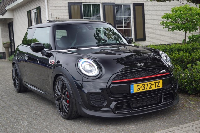 18" lm velg (JCW Cross Spoke 506), JCW sportremmen in Rood uitgevoerd, Verlaagd onderstel, JCW Lederen/Alcantara Kuipstoelen, JCW Pro uitlaat incl klep, JCW Pro Diffusor, Frontspoiler, JCW Alcantara sportstuurwiel, JCW Carbon handrem afdekking Adaptief onderstel, Variabel sportstuurwiel,  Alarmsysteem, Comforttoegang, Geluidsisolerende ruiten, Panoramadak, Binnenspiegel automatisch dimmend, Neerklapbare achterbank, Lendensteun bestuurder en passagier, Stoelverwarming bestuurder/passagier, Sfeerverlichting, Automatische airco, Apple Carplay, LED koplampen, LED achterlichten met Engelse vlag, Parkeerhulpsysteem Plus, Head-Up Display, DAB-ontvangermodule, Harman/Kardon Surround Sound systeem, Teleservices, Hoogglans Shadow line, Getinte ramen achter, Adaptive Cruise Control, Lichtpakket, Telefonie met draadloos opladen, MINI navigatiesysteem, Businesspackage