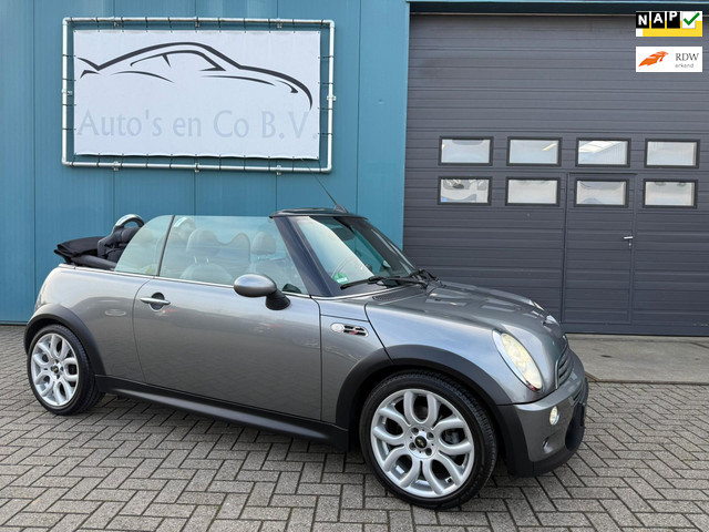 In zeer nette staat verkerende origineel Nederlands geleverde en perfect rijdende Mini Cabrio 1.6 Cooper S Automaat met half leder interieur, climate control, cruise control, mtf leder stuur, originele 17 inch lm velgen met zgan Bridgestone banden, park distance control, elec dakbediening, bi-xenon verlichting met koplampsproeiers, windscherm, nieuwe radio/cd/Bluetooth speler (origineel ook...