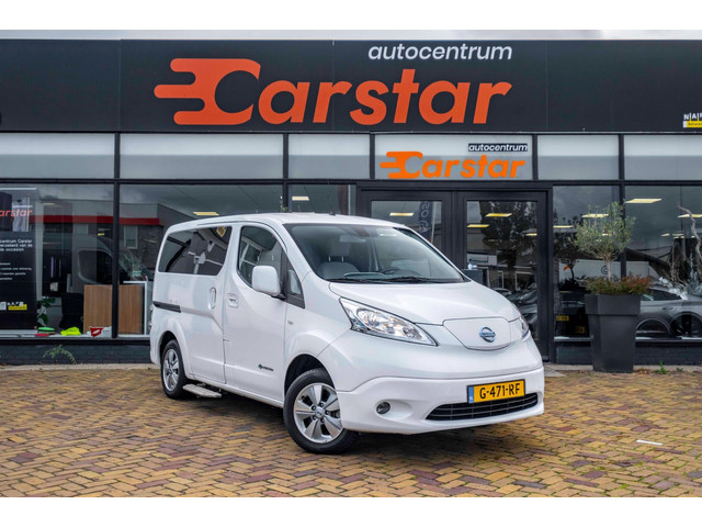 Ontspannen en zorgeloos autorijden, dat doet u met deze Nissan E-NV200 Evalia. Doe maar luxe! Neem plaats in de verwarmbare voorstoelen en voel de weldaad in koude dagen. Hoe koud het buiten ook is, het verwarmbare stuurwiel brengt uw handen en vingers snel weer op temperatuur. Een openzwaaiend portier kan flink wat wind vangen, met gevaarlijke gevolgen. Dat zal niet gebeuren met de handige, ruime schuifdeur. De uitmonstering van deze auto wordt gecompleteerd door onder meer 15 inch lichtmetalen velgen, extra getint glas, in delen neerklapbare achterbank, elektrisch bedienbare en verwarmde...