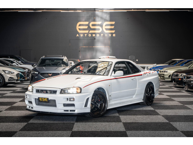 A collector-grade R34 GT-R V-Spec II with Nismo livery and ultra-desirable LMGT4 wheels.
