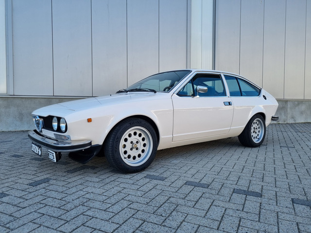 Alfa Romeo Alfetta GT 1.6, de wonderschone schepping van Giugiaro. Dit uitzonderlijk fraaie exemplaar komt uit 1980 en heeft 81550 kilometers op de 5-cijferige teller.