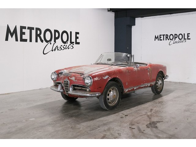 De Alfa Romeo Giulia-lijn werd geproduceerd van 1954 tot 1965. In totaal werden er ongeveer 132.000 exemplaren geproduceerd in de fabriek in Milaan, Italië. Met zijn tweezits cabriolet met open dak is de Alfa Romeo GiuliaSpider een van de meest herkenbare Alfa Romeo-modellen. Deze heeft Amerikaanse papieren. Een restauratieproject met veel potentie . Voor een goede indruk qua uit te voeren werkzaamheden kunt U de auto bij Metropole Classics nader bekijken,