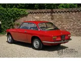Het betreft hier een hele leuke Alfa Romeo 1300 GT Veloce in de kleur Alfa Rosso in combinatie met een beige interieur welke 34.364 laat aflezen op de teller. De door Bertone getekende coupé is na al die jaren nog steeds direct als Alfa Romeo te herkennen en heeft nog niets aan haar tijdloze schoonheid hoeven inboeten. De auto is al eens gerestaureerd en dat is gezien de kwaliteit van destijds nog steeds goed te zien. De carrosserie ziet er dan ook prachtig uit.