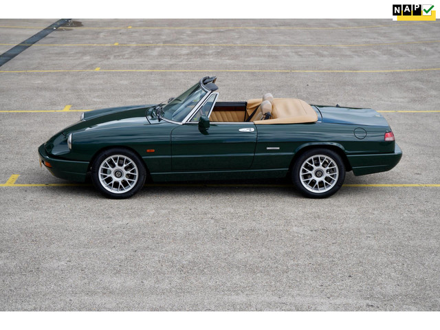 Origineel Nederlands geleverde Alfa Spider 2.0 in de zeldzame kleur 'Verde di Bosco'. Superlang in bezig geweest bij dezelfde eigenaar en zeer goed onderhouden. De type 4 is de serie met stuurbekrachtiging en injectie motor. Een heerlijke auto om hele lange ritten mee te maken... Volledige historie aanwezig!
