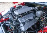 Dit specifieke exemplaar is uitgevoerd in de originele kleurencombinatie Rosso Alfa met Grigio Scuro dak, gecombineerd met een beige interieur. Het geheel vormt een authentieke configuratie die exact overeenkomt met de bedoeling van de ontwerpers. Eenmaal ingestapt valt op hoe goed alles bewaard is gebleven: de stoelen, het leer, de deurpanelen, zelfs de bedieningselementen. Niets voelt versleten aan; integendeel, de auto is fris en matcht de lage kilometerstand zonder twijfel.