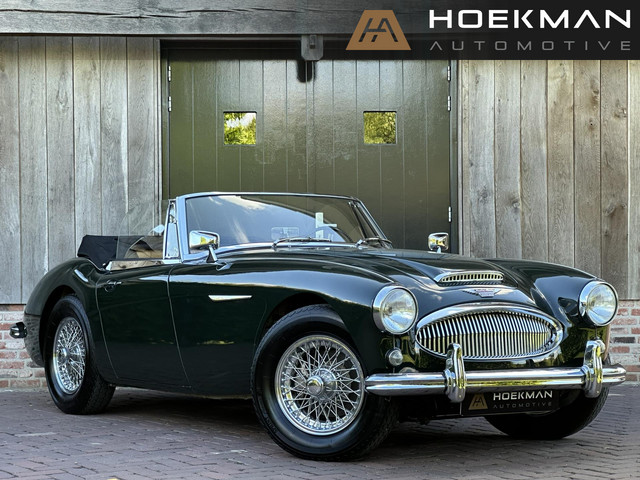 Deze auto is ruim 24 jaar geleden vanuit de Verenigde Staten naar Nederland gekomen. Hierna is de auto volledig hersteld en gespoten in de mooie groene Austin Healey kleur. Hoewel de auto al vele jaren oud is, verkeerd de auto nog steeds in erg nette staat. Hoewel er uiteraard gebruikerssporen aanwezig zijn, is dit uiteraard conform leeftijd en kilometers. Ook het chroomwerk en de fraaie spaakwielen met chromen “knock-off” wielmoeren zijn in goede staat. Het interieur is voorzien van fraaie beige kleurig lederen bekleding. De fraaie stoelen hebben een goede zit en bieden voldoende comfort voor goed rijgedrag. Een fijne extra die de auto biedt is de verstelbare stuurkolom, zodat iedereen een goede houding kan vinden in deze auto.