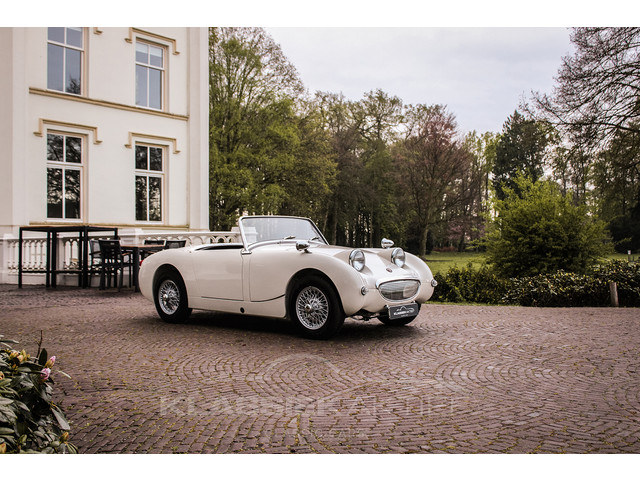 Deze Austin Healey Sprite MKI is in 1960 geproduceerd en oorspronkelijk geleverd in de Verenigde Staten. In 1997 is de auto naar Nederland gekomen (transportbon aanwezig) en heeft vervolgens een grondige en zeer vakkundige body-off restauratie ondergaan. Het resultaat is een werkelijk in nieuwstaat verkerende Austin Healey Frogey in smetteloze conditie en met een prachtige kleurencombinatie Old English White met rood lederen interieur. Zelden hebben we een klassieke auto gezien die zo perfect is gerestaureerd. Uiteraard zijn tijdens de restauratie ook het motorblok en de versnellingsbank volledig gereviseerd.