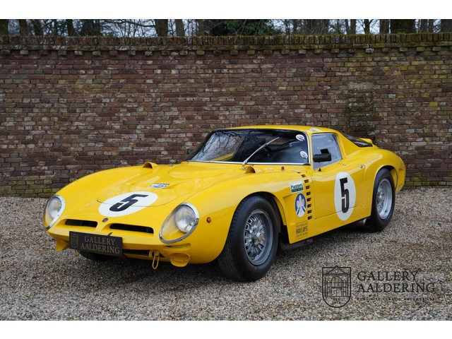 De prachtige gele Bizzarrini die hier wordt aangeboden, werd gebouwd in 1965 als een Strada-versie. Na een aantal eigenaren in Italië te hebben gehad, werd de auto in 1997 gekocht door een bekende gentleman-racer in Nederland. Hij startte prompt een uitgebreide restauratie, waarbij het werk werd toevertrouwd aan een vooraanstaand Brits bedrijf dat gespecialiseerd is in de restauratie en preparatie van raceauto's. Dit omvangrijke project duurde bijna twee jaar, en gedetailleerde facturen voor het werk zijn te vinden in het uitgebreide dossier dat bij de auto zit.