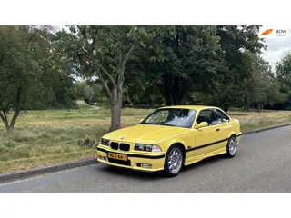 De buitenzijde is zeer strak, schadevrij en alle naadjes zijn correct. De auto is uitvoerig gepolijst en gepoetst en de lak is super glad. De body staat voor 90% in de originele lak. Dakargelb is de M3 introductiekleur, dus deze kleur heeft toen in alle autobladen gestaan. Sowieso zijn er maar een paar "echte" E36 M3 kleuren en dat zijn Dakargelb en Estorilblau. Dat zijn nu de geliefde en gezochte kleuren. De originele M3 velgen zien er uit als nieuw en zijn voorzien van de correcte Michelin Pilote Sport banden. Op de buitenspiegels zitten nog de originele stickertjes uit de fabriek!