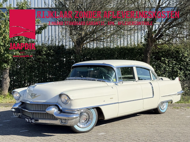 Mooie 1956 Cadillac Series 62 Sedan, luxe uitvoering met onder andere airco (systeem lijkt compleet maar functioneert op dit moment niet), elektrische ramen rondom, elektrisch verstelbare voorbank, armsteun achter en goudkleurige emblemen. Chroomwerk in nette staat en compleet, interieur deels opnieuw gestoffeerd. Ruitenwissermotor conversie naar elektrisch, nieuwe deurrubbers (alle ventilatieraampjes gaan mooi open). Nieuw slot voor de kofferklep aanwezig. Auto is afkomstig uit Texas, harde carrosserie.