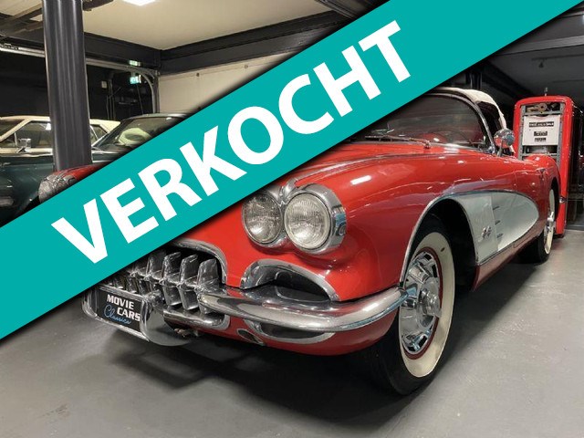 Chevrolet Corvette C1 van 1959. V8 327ci met powerglide automaat. Deze auto is uitgevoerd in de kleur Roman red met crème zijkanten, gecombineerd met een matching rood interieur en een witte soft top. Banden met witte zijvlakken. De motor is niet matching maar loopt erg mooi. Deze auto is al vanaf 1995 op Nederlands kenteken, en is in mooie rijders kwaliteit. Het Chroomwerk heeft de vorige eigenaar opnieuw laten doen en ziet er erg mooi uit.