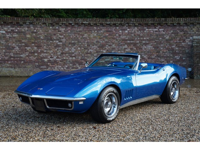 Deze Chevrolet Corvette C3 Convertible 327 CI uit 1968 is een schitterend voorbeeld van de Amerikaanse sportwagen uit de jaren 60. De auto, uitgevoerd in een frisse LeMans Blue lak, accentueert perfect de lijnen van deze klassieker. Het Medium Blue vinyl interieur vormt een prachtig contrast met het exterieur, wat zorgt voor een stijlvolle en retro-uitstraling. De strakke carrosserie heeft nette passingen van de carrosseriedelen, mooie ruiten en prachtige bumpers. De correcte velgen en de algehele verzorgde afwerking maken het plaatje compleet, waardoor deze Corvette in nette en verzorgde staat verkeert.