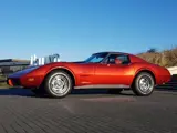 Chevrolet Corvette Stingray C3 Coupe, V8, automaat, 6.6 liter, de originele motor is vervangen door een 406 Small Block met 450 pk, 400 Cubic Inch, T-roof, bouwjaar 02-1976, 65.406 miles. De kleur in Fresh Sunset Pearlescent Metallic met Danube Black strepen heeft een prachtige parelmoer glans en veranderd van kleur al naar gelang het zonlicht erop schijnt. Inclusief een lakverzegeling waardoor de schitterende hoogglans behouden blijft. Totaal gerestaureerd en gemoderniseerd, zeer veel nieuwe onderdelen en geheel nieuw interieur, zwart lederen bekleding, 15 Inch originele chromen Rally velgen met bandenbreedte 225/70R15. En nog veel meer !!