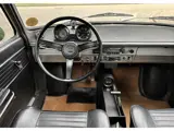 Het interieur is helemaal origineel en een echte tijdcapsule. De stoelen hebben de originele bekleding en de bestuurdersstoel heeft slaapbeslag. De zwarte bekleding ziet er uit als nieuw, want er hebben jarenlang hoezen overheen gezeten. De Blaupunt Frankfurt radio doet het prima en ook de instrumenten werken zoals het hoort. De ruitensproeier heeft een elektrisch pompje en het hemeltje hangt strak. De originele rubber vloerbedekking is helemaal heel en voorzien van mooie stevige matten.