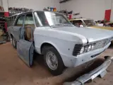 De carrosserie van deze auto is ongeveer 20 jaar geleden geprepareerd, gerestaureerd en met primer gespoten. Structureel in orde, maar moet volledig geschuurd worden om gespoten te worden.