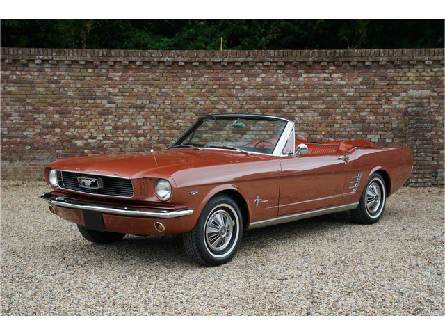 Het betreft hier een hele fraaie Ford Mustang Cabriolet uit 1966 die is uitgevoerd met de geliefde handgeschakelde transmissie. De auto is afkomstig uit Florida en wordt geleverd inclusief de originele aankoopnota! Uniek! Als we de aankoopnota bestuderen zien we dat het hier een Ford Mustang Cabriolet betreft die is uitgevoerd in de prachtige kleur Emberglo en is voorzien van een elektrisch bedienbare softtop, 14 inch banden, een radio, ruitenwissers met 2 snelheden, undercoating en transport naar de dealer. De totale prijs voor de auto kwam uit op maar liefst 3097,61 cent. Ongelooflijk. Nog specialer is dat de dame die de auto nieuw heeft gekocht tot nu toe de enige eigenaresse is geweest.